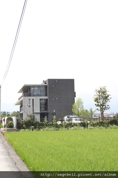 這個有個性海田行館,他外牆的LOGO是臨帖王羲之的書法字樣。