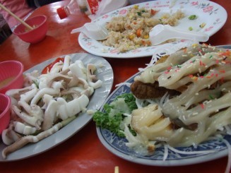 踏浪後,我們到一家著名的阿輝海產店用餐。